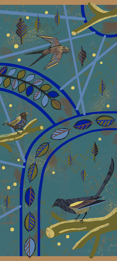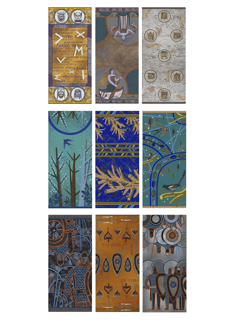 Данная коллекция состоит из девяти палантинов, посвященных декоративному оформлению Петербургского метрополитена. Коллекция демонстрирует диалог между урбанистической эстетикой и текстильным дизайном. Авторская концепция объединяет три тематических блока: мифология и символизм, природа и урбанизм, историческое наследие.