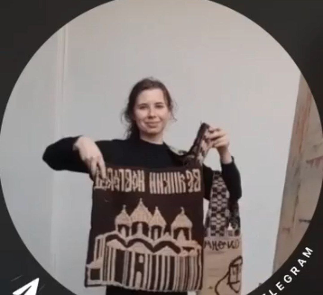 Шопперы с Новгородской тематикой. в Технике ремизного ткачества. Выполненные на ткацком станке. На первом изображён Софийский собор- одна из главных достопримечательностей Великого Новгорода. А на втором элемент берестяной грамоты, рисунок мальчика Амфима, что жил в далёком 11 веке и рисовал рисунки.
