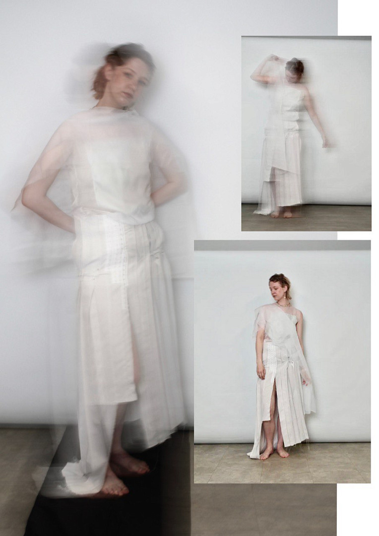 Вдохновение: бинарное мышление, чрезмерное использование которого приводит к хаосу, что в конечном итоге является точкой перехода, источником трансформации. Коллекция - художественное воплощение идей преодоления дуализма. Освобождение, "перерождение", "чистый лист".