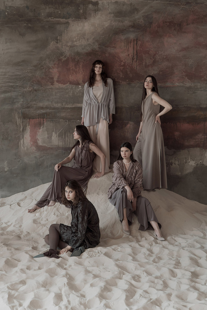 Пять образов – визуализация душевных состояний того, кто проходит путь внутреннего изменения - нахождение в раздумьях, смятении, и , наконец, спокойствии. Цель костюмов - расширить гармонию внутреннего мира на внешний.