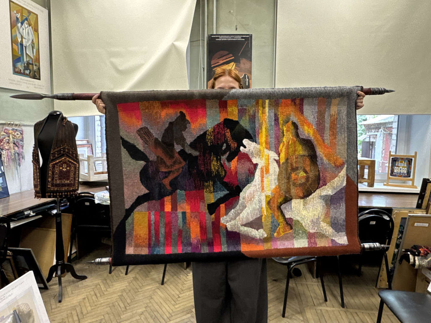 Панно 97х141, выполненное в классической гобеленовой технике (гладкое ткачество), на историческую тему.