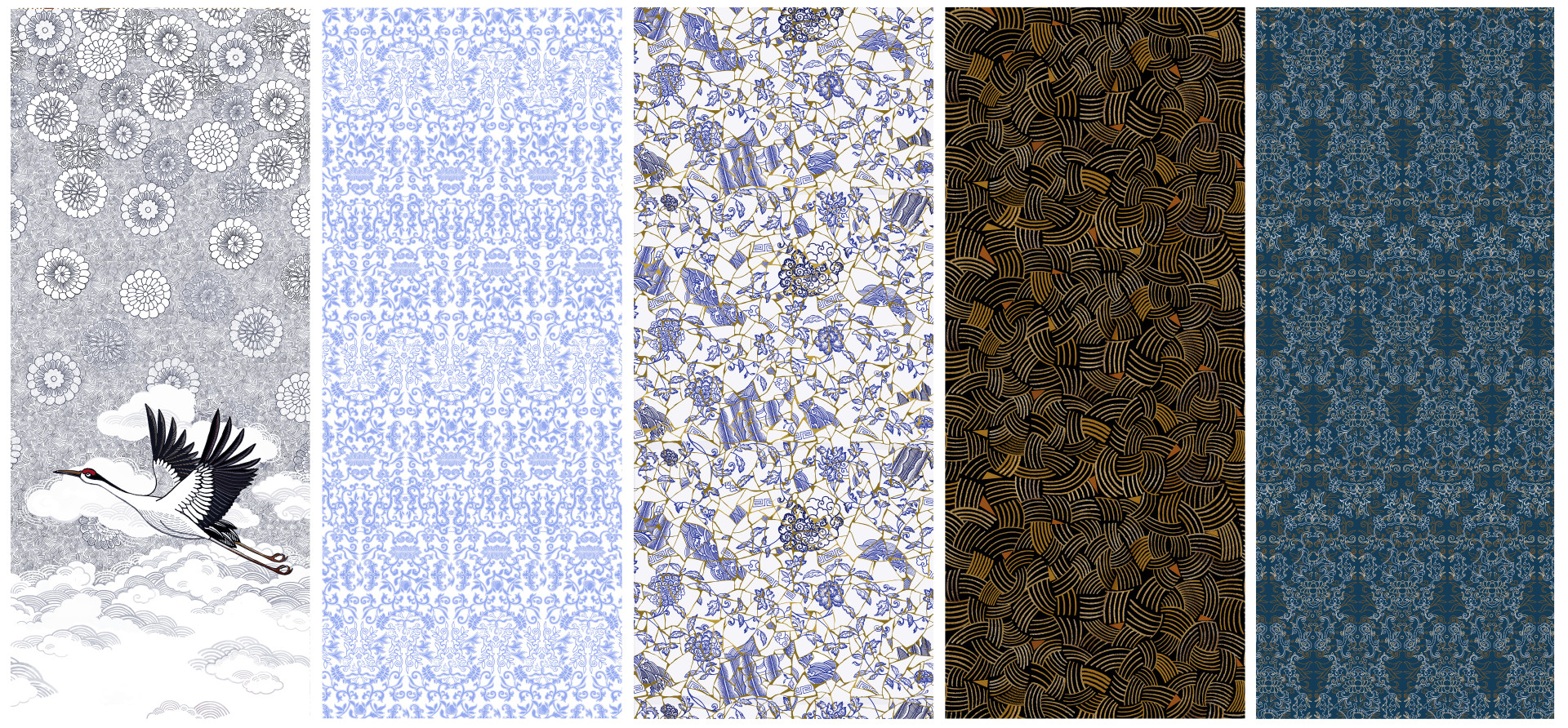 Вдохновленная богатым наследием китайской керамики династии Цин, коллекция плательных тканей представляет сочетание традиционного искусства и современного текстильного дизайна. Каждая ткань в коллекции отражает характерные элементы керамических изделий той эпохи, включая изысканные узоры, яркие цвета и сложные текстуры. Ткани создавались путем двух технологий: цифровой печати на шелке армани и жаккардового ткачества. Коллекция подходит как для создания летних накидок и пальто из жаккарда, так и для легких платьев, блузок, кимоно и т.д. из шелка армани с цифровой печатью.