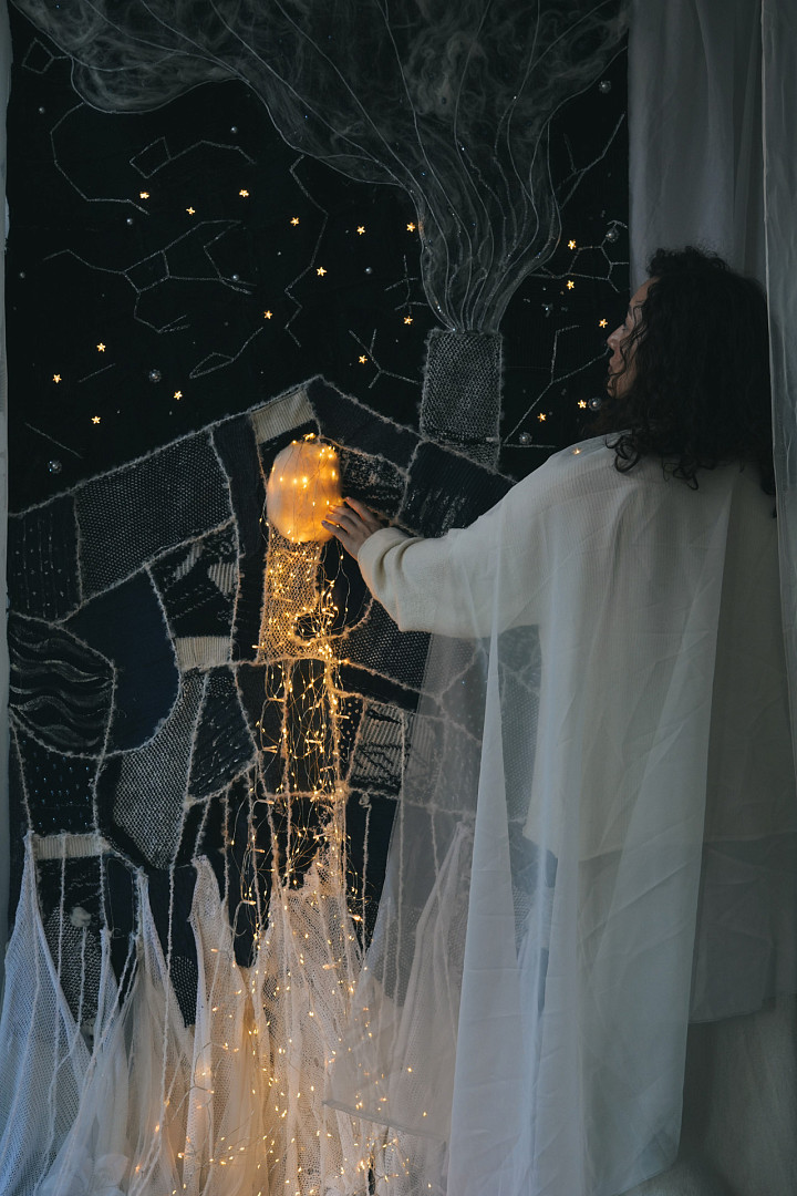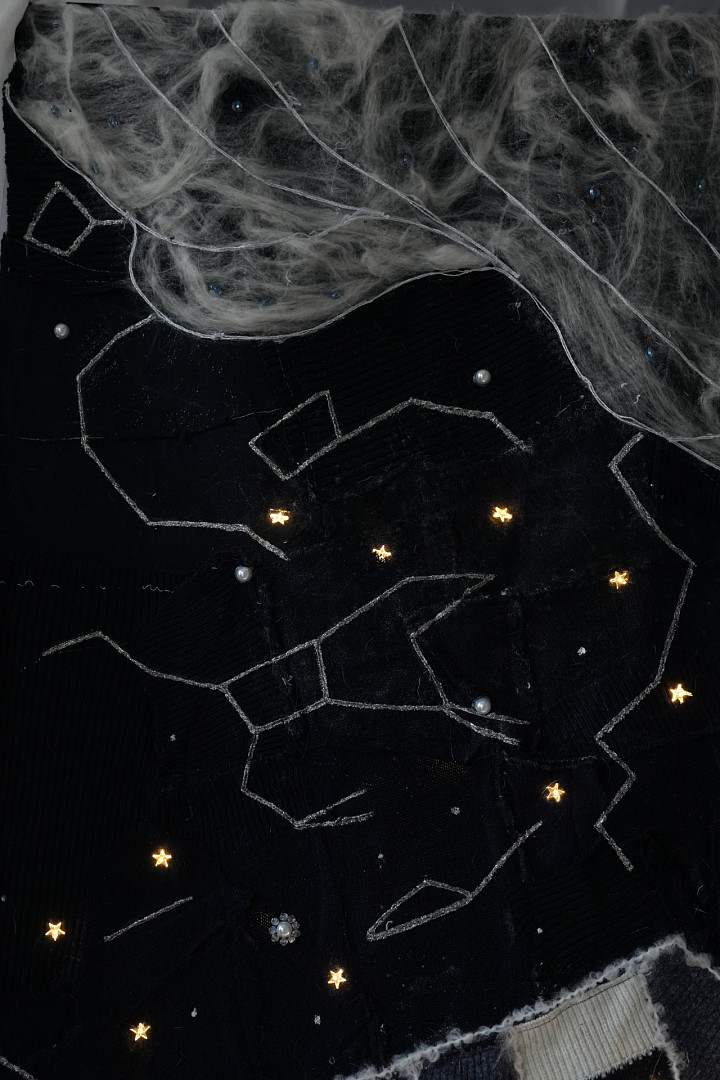 В творческой работе отражается идея детских воспоминаний, которые связаны у меня с бабушкой и дедушкой (они и стали ведущими лейтмотивами проекта). Бабушка для меня является воплощением ангельской доброты, человеком с большим-большим сердцем и невероятным терпением. А дедушка всегда учил меня новому: я помню, как мы выходили на крыльцо дома и смотрели на бескрайнее звездное небо, он показывал мне, где расположено каждое созвездие и рассказывал мифологию.