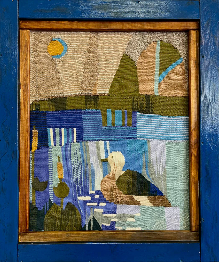 Шпалера "Утиные истории", 50х70, выполненная в технике ручное ткачество. На ней изображена уточка, грациозно плывущая по пруду среди кувшинок, создавая ощущение спокойствия и природной гармонии. Позади нее виднеются поля с деревьями, а на небе сияют солнце и луна, придавая сцене волшебную атмосферу перехода дня в ночь. Такой дизайн отлично подчеркнет уют и природную красоту в интерьере.