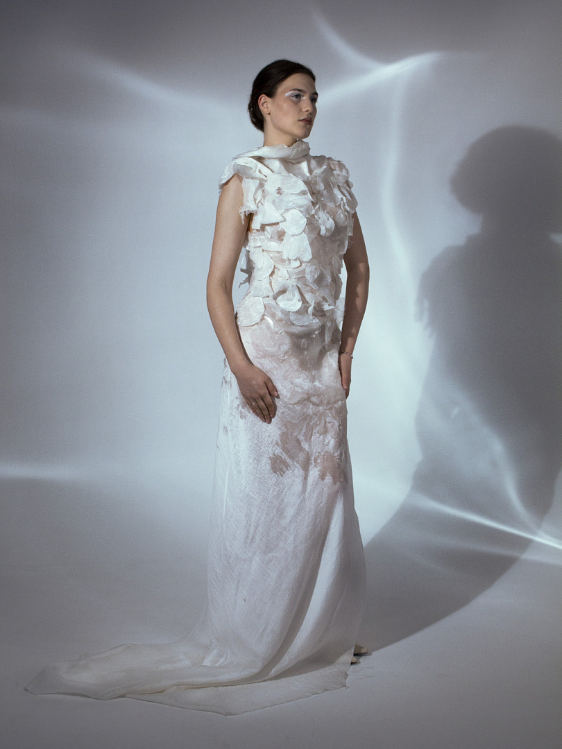 Но есть и второе измерение — кризисы, через которые проходит любая жизнь. Как деревья, теряющие листву, чтобы вновь расцвести, мы переживаем падения и возрождения. Эта коллекция — о превращении ран в узоры, о том, как боль становится частью красоты.