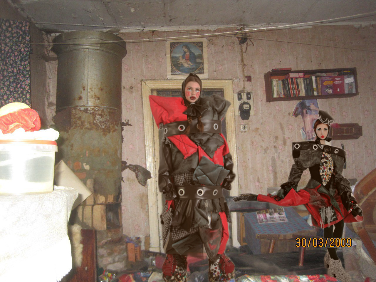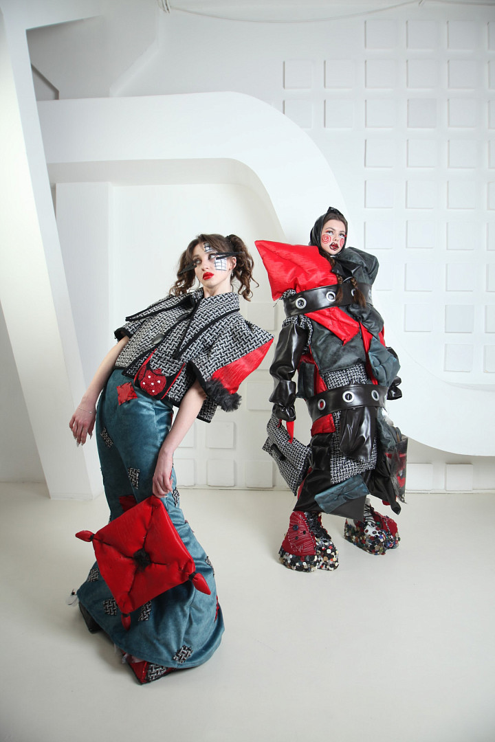 Наша коллекция одежды является ярким и провокационным сочетанием ассоциаций о «синдроме Плюшкина» и визуального наследия позднего СССР, преобразованного в элемент постсоветского абсурда и экспериментального выражения на подиуме.